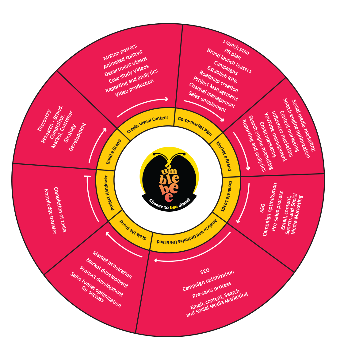 The Bumblebee Branding Company specializes in helping brands of all sizes take off, soar to great heights, stand out in their industry, and achieve all their business goals. We handle end-to-end branding and marketing for businesses, no matter where they are in their branding journey.